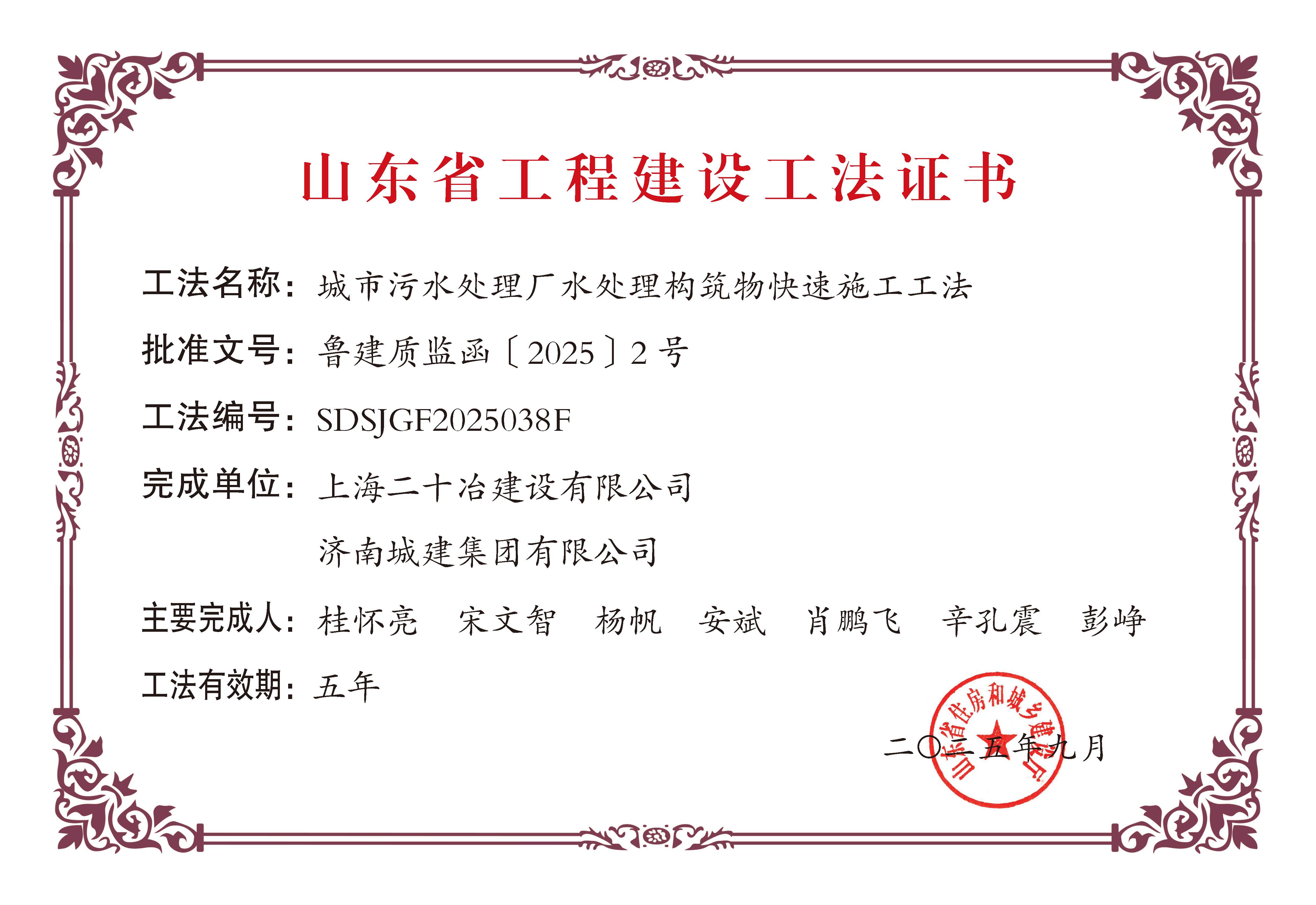 9月25日,上海二十冶報送《城市污水處理廠水處理構筑物快速施工工法》首次斬獲山東省工程建設典型工法,實現該省級重要技術獎項突破。